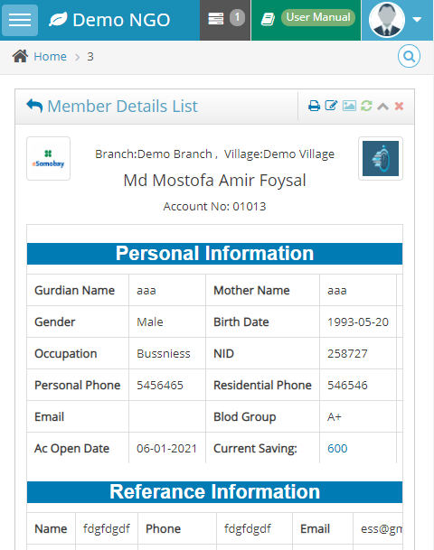 Member Access: Member Can Access the Apps by Login she/her. Main Account No and Password Collect from Ngo Institution. Have to go to the Member. Modules Member Password Generate Section.